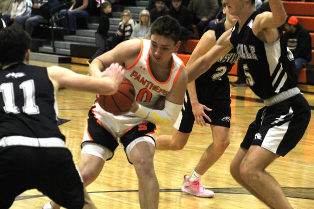Dansville led 7-6 after one, but the Panthers outscored the Aggies 23-15 in the second to take a 29-22 lead at the break. Joey Ballagh and Jalen Rogozinski hit two triples each in the quarter to spark the Panthers.