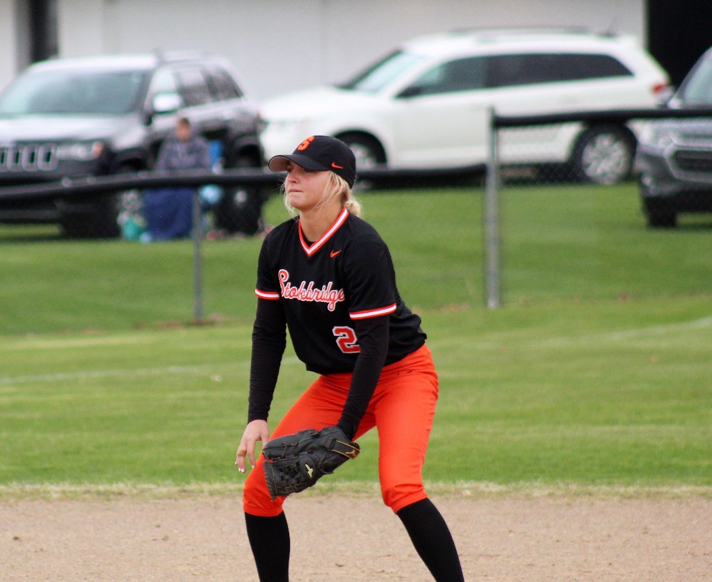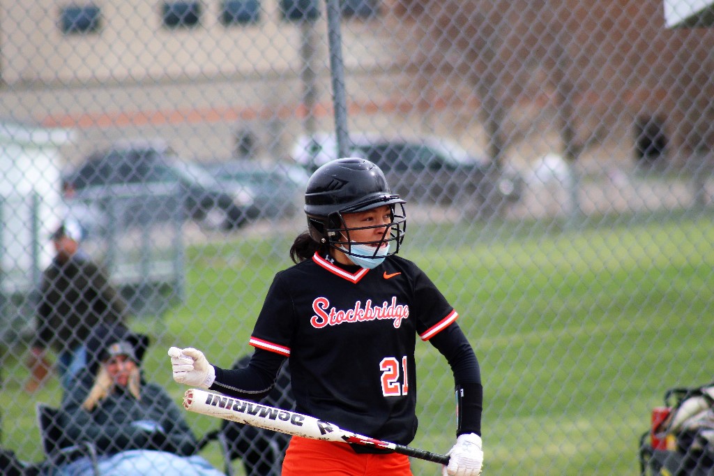 The Stockbridge softball team came away with a doubleheader split with arch-rival Leslie Monday beating the Blackhawks 3-2 in the opener and falling 12-0 in the second.