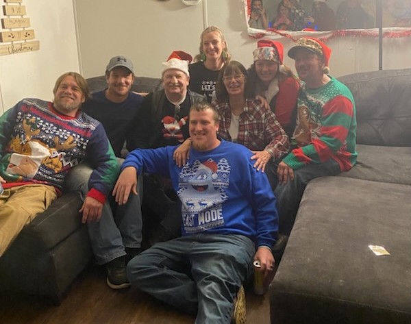 in a holiday photo with her parents and her siblings.