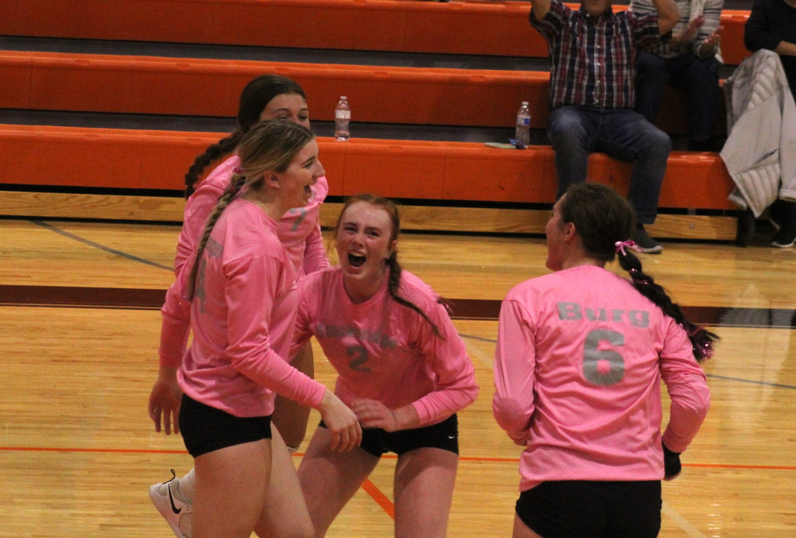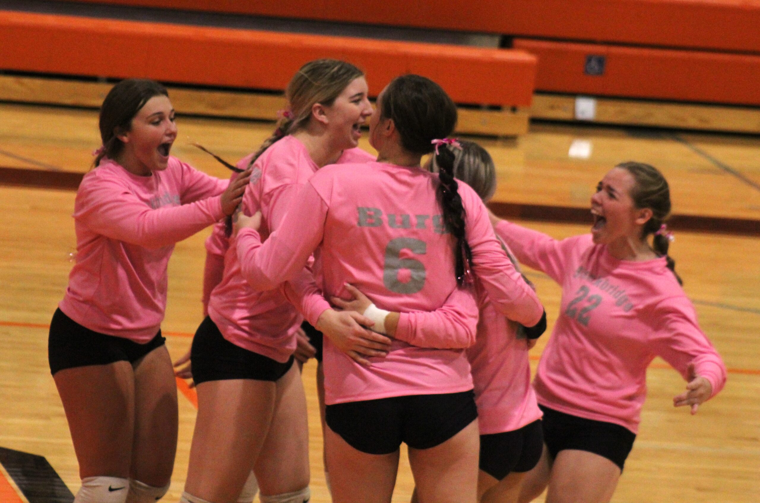 Burg and Jones fired eight kills each, while Burg had four aces and Jones three.