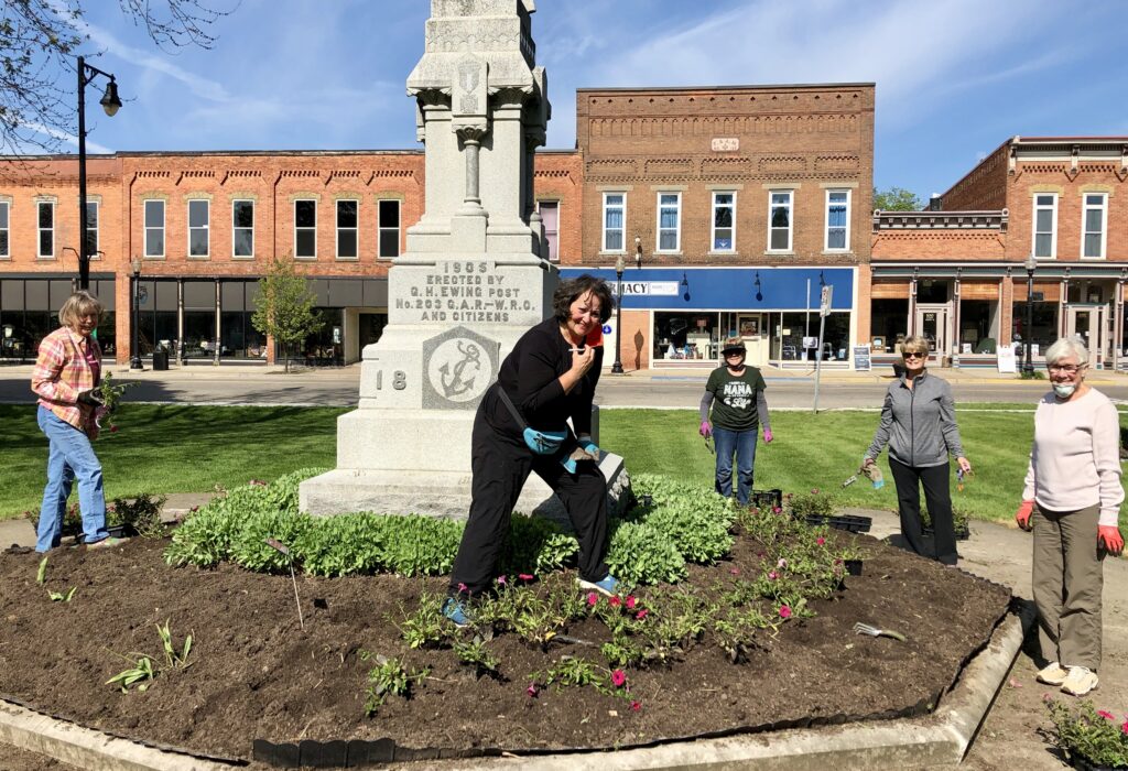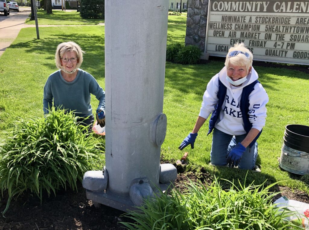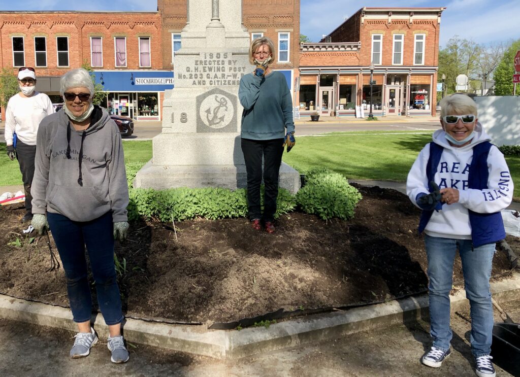 In the past, the Stockbridge Township has depended on Stockbridge Area Garden Club to plant and maintain flowers in the areas around the Civil War statue on the Township Square and under the flagpole at Oaklawn cemetery. Unadilla Township has enlisted the group to plant Gregory’s roadside. The garden club’s challenge was clear: How to perform a volunteer maintenance project to assist Stockbridge and Unadilla Townships in the face of a mandate of no social gatherings due to Covid-19? This could not be the usual club activity this year.