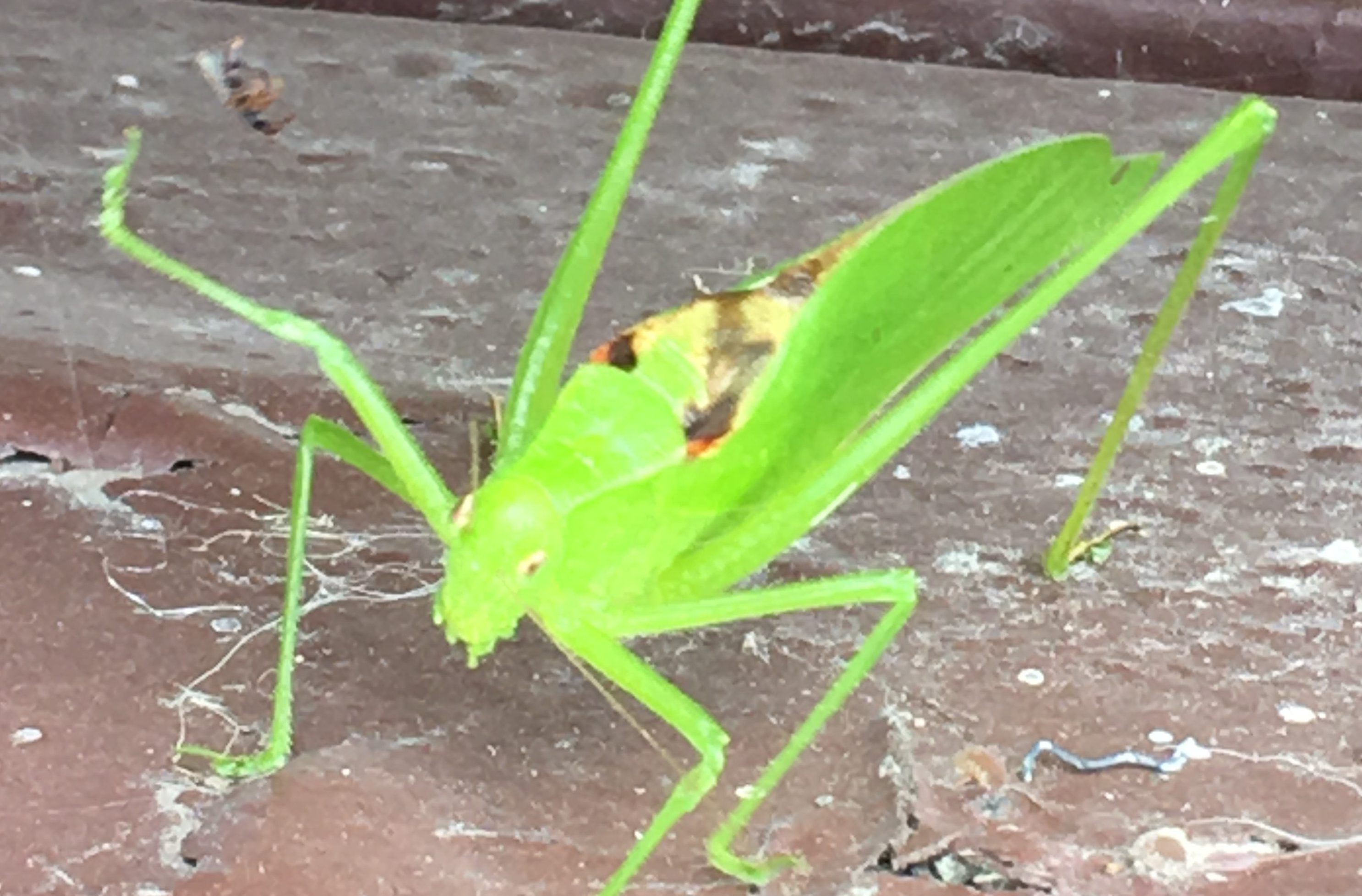 There are strange bugs among us, cool-looking, strange-sounding bugs. One of them, the Katydid, derives its name from the sound it makes. Its repetitive clicks and calls resemble someone saying, “Ka-ty-did.” Both genders are capable of producing the sound. Katydids are related to crickets and grasshoppers, with large back legs for jumping. They have wings, however, to help them fly away from danger.